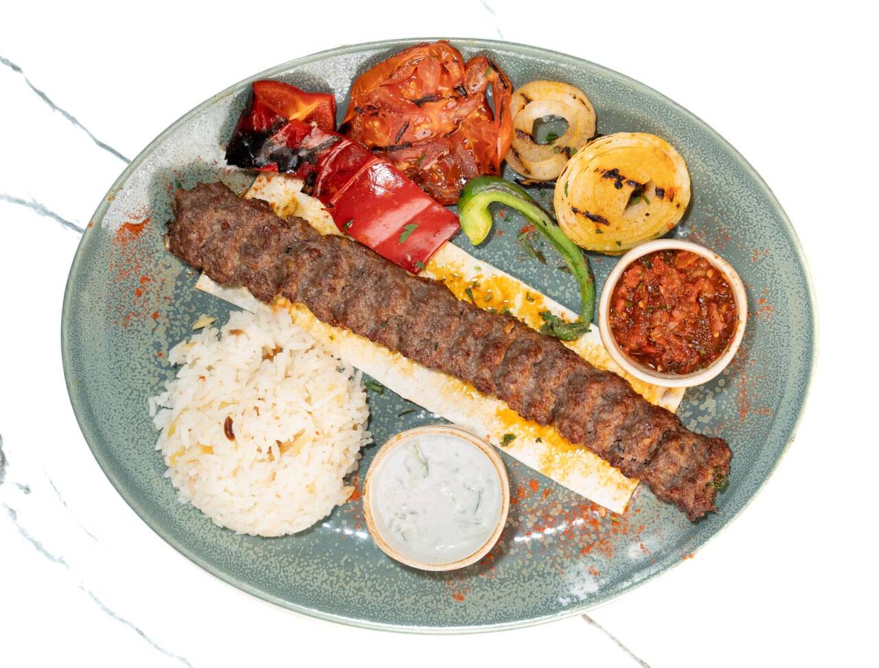 Urfa to danie z łagodnie przyprawionego mielonego mięsa wołowego, formowanego w długie cylindry i idealnie grillowanego. Produkt zawiera nabiał i gluten.